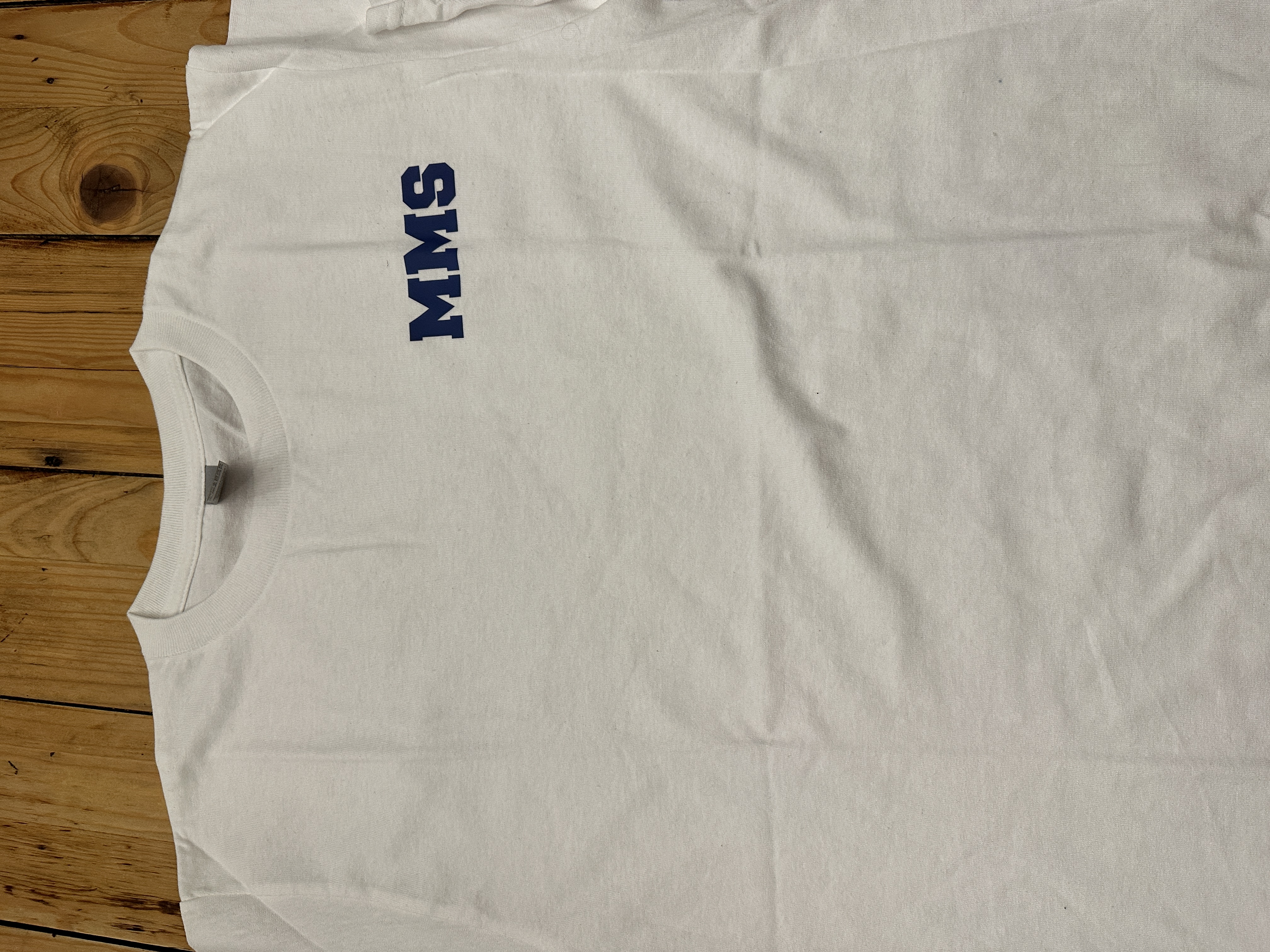 White short sleeve with MMS on front and dragon on back - Youth L . All Sales are final.